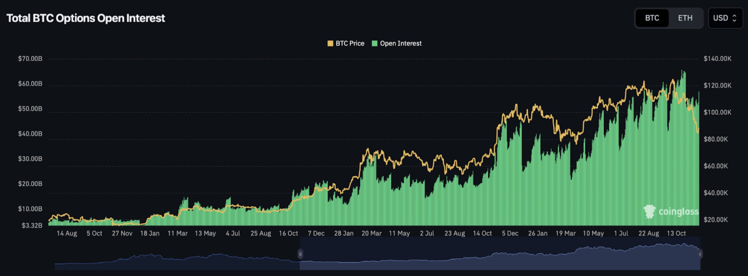 Bitcoin Options Open Interest Hits $50B as Defensive Positioning Dominates