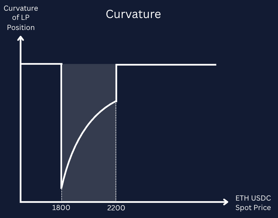 While Panoptions are perpetual, meaning that they do not expire, the curvature (or gamma) of the value profile can be controlled by changing the price range at which the trader is willing to provide liquidity for the underlying Uniswap LP position. Tighter price ranges correspond to shorter effective “tenors” with higher curvature, while longer tenors can be mimicked by wider price liquidity ranges. In a similar way, the delta of the Panoption at entry can be chosen by centering the price range around different strikes relative to the prevailing spot price. To see a fuller explanation of this effect, please refer to the previous article in this series or Guillaume Lambert’s Medium articles.