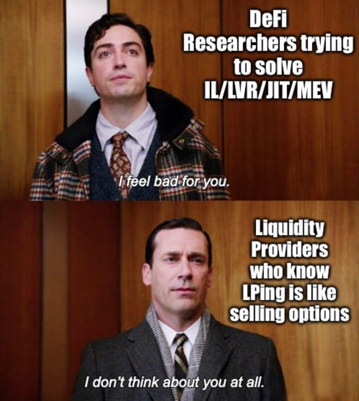 Demystifying impermanent loss, loss versus rebalancing, just in time liquidity, and maximal extractable value through the lens of Uniswap LPing as options selling.