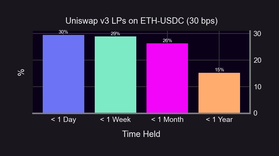 LP positions are held for a short period of time – typically less than a day. We explore widths and holding time from the POV that LPs are option sellers with an implied expiry date.